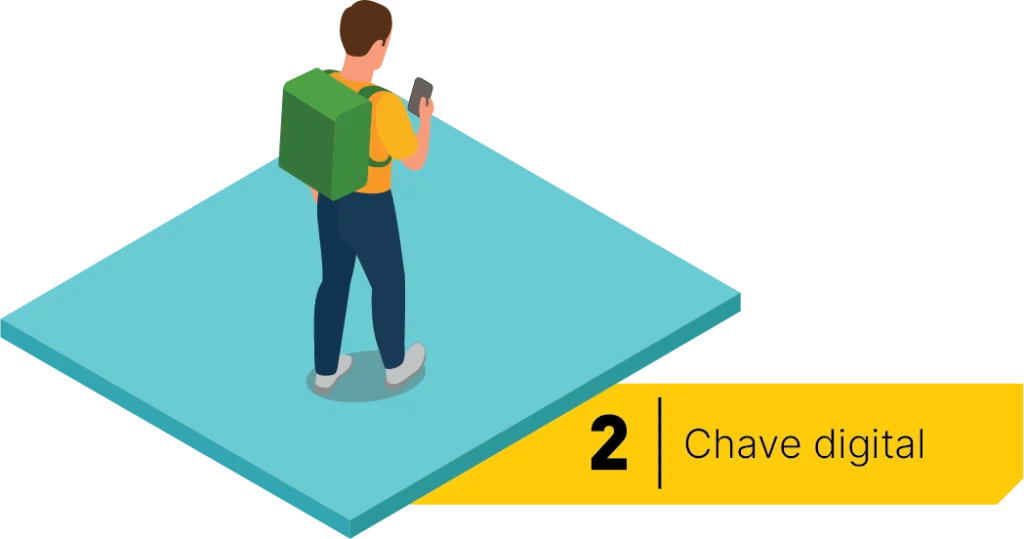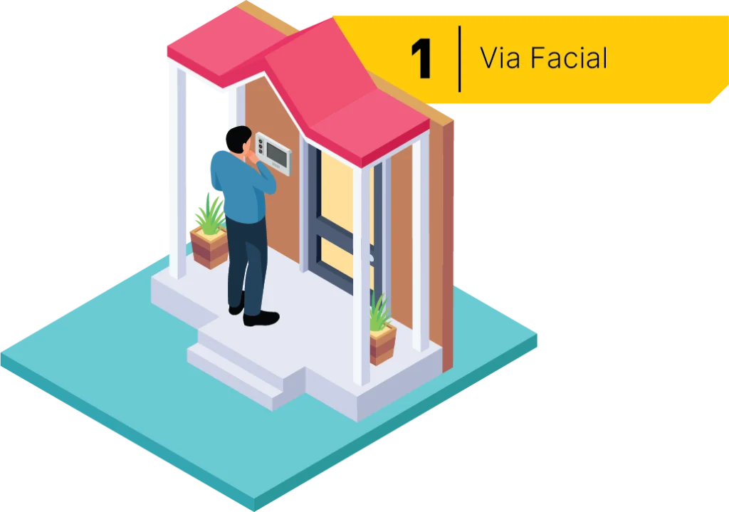 O reconhecimento facial facilita o uso: basta olhar para o leitor — sem necessidade de aplicativos, tags ou senhas.